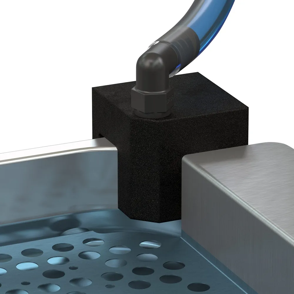 Urządzenie pobiera wodę z myjki ultradźwiękowej, chłodzi ją i oddaje z powrotem do myjki.