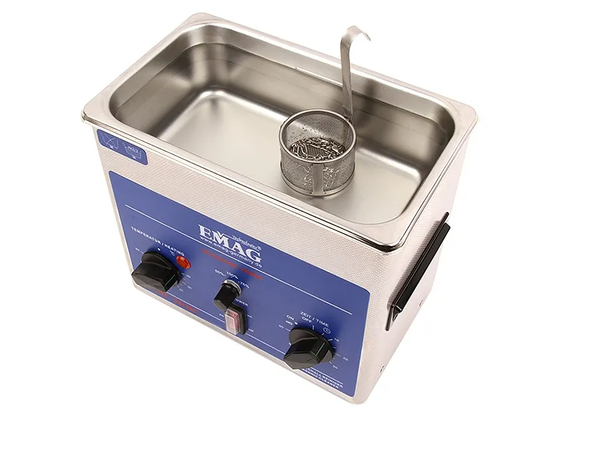 Siatka koszy stosowanych w większości myjek ultradźwiękowych ma oczka o średnicy 0,5-1,0 cm. Mniejsze przedmioty mogą wypaść przez oczka siatki na dno zbiornika, co nie tylko może utrudnić ich wyjmowanie po czyszczeniu, ale też zmniejszyć skuteczność samego czyszczenia (przedmioty w celu skutecznego mycia w myjce nie powinny leżeć bezpośrednio na dnie zbiornika). W takiej sytuacji doskonale sprawdza się dodatkowy koszyk o drobnej siatce, który umieszczamy w myjce i następnie wyjmujemy przy pomocy zamocowanego do niego uchwytu.